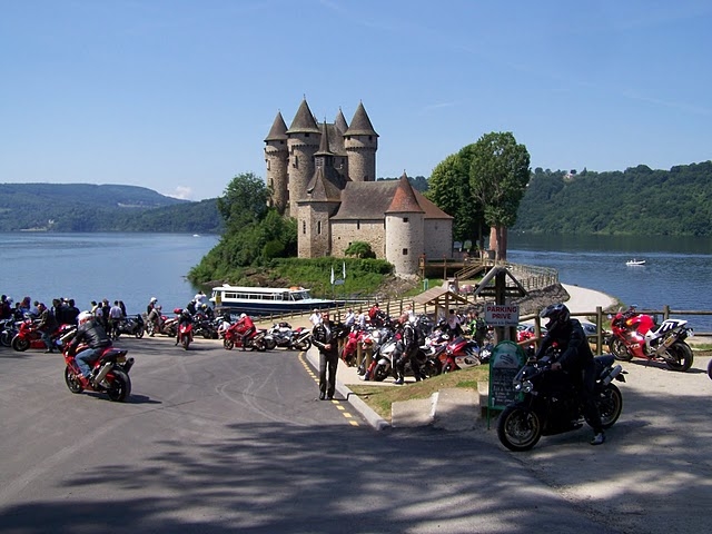 Rendez vous dans un gite du Mont Dore. Les motos sont garés sur un terrain de basket, nous pouvons dormir sur nos deux oreilles. Chacun ayant ramené une spécialité de son coin ou de son cru la soirée s’avère pleine de découvertes diverses et variées. Certaines même surprenantes. Mais revenons à la balade, la région nous tend les bras avec ses routes goudronnées dont certaines facilement qualifiables de billard. Mais attention, certaines parties abritent des colonies de gravillons. Les dommages causés par la période hivernale doivent nécessiter un entretien régulier. Des routes superbes encadrées par des paysages qui font rêver. Une invitation à la balade et quand le soleil est de la partie, les twins piaffent d’impatience (Les pilotes aussi d’ailleurs). Un col ne s’accommode pas de ligne droite, il lui faut des courbes. Ca tombe bien, le twin aime les virages. Son pilote adore la sensation provoquée par un virage sur le couple, tout en douceur. Sa machine répond et ne fait qu’un avec lui. La communion de l’homme, de la machine et de la route, un brelan de rêve. Il faut bien admettre que le motard est accroc. Non pas qu’il se drogue mais il est accroc de virage, d’angle et de liberté. Des moments qui ne se racontent pas mais se vivent. Ouvrez simplement une carte de la région. Mettez le doigt sur la ville du Mont Dore. Remontez légèrement vers le lac Servière. Prenez la direction de Saint Nectaire, Murol. Passez par le lac de Saint Savin. Faites le tout pour prendre le pont de Clamouze. Ensuite direction Condat et Riom es Montagnes avant de remonter vers Bort des Orgues pour attraper ensuite une petite route rapide en direction de la Bourboule et vous voila quasiment de retour sur le Mont Dore. Cette promenade vous donne envie de vérifier les pleins de votre machine, de charger votre sac et de partir vérifier sur place ? Rien de plus normal, sinon il faut abandonner la moto. Un volcan Auvergnat devrait porter le nom d’une moto, le volcan Honda par exemple tellement la région sait bien nous accueillir.
